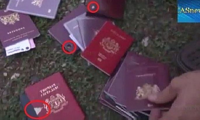 Пользователи интернета заметили странную вещь на кадрах с места крушения Boeing 777 на Украине. Дело в том, что паспорта жертв, которые попали в кадр, крайне подозрительны. Несмотря на взрыв, горящие обломки и сильное воздействие при ударе об землю идентификационные докумены массово находятся в идеальном состоянии. Кроме того, многие из них... просрочены. Об этом свидетельствуют отверстия от дыроколов.
